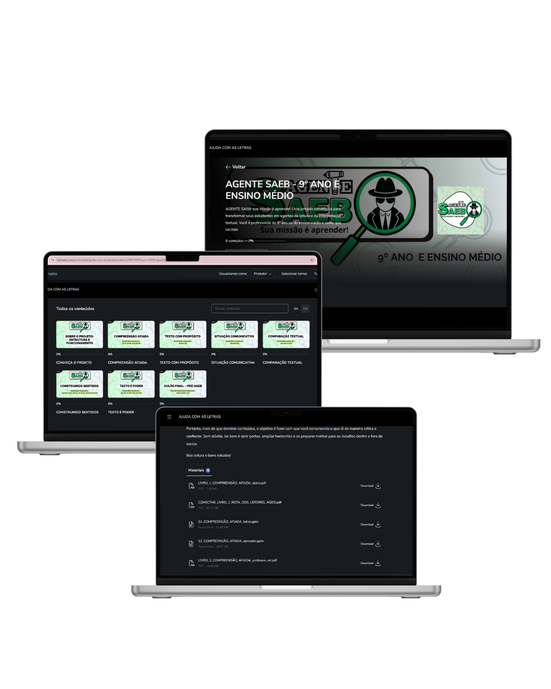 Como muitos de vocês já sabem, nossa missão é apoiar professores na preparação de seus estudantes para o sucesso. Temos experiência sólida no ensino de Língua Portuguesa e na criação de recursos pedagógicos estratégicos, como o SUPERSAEB, ACADEMIA DOS DESCRITORES e AGENTE SAEB, para potencializar resultados e tornar a rotina de sala de aula mais leve e eficiente.